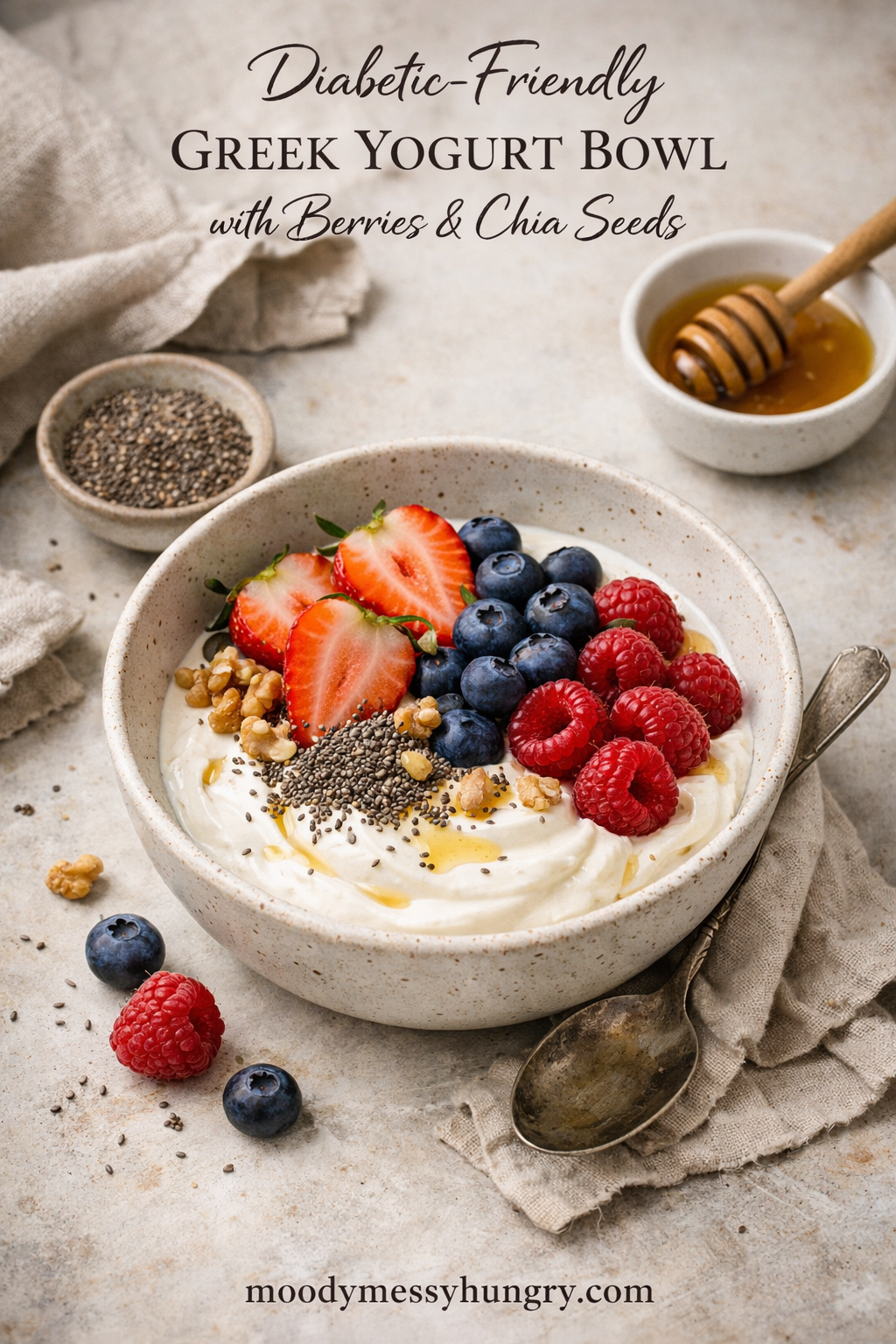 Some mornings, I wake up craving something sweet, not “blood sugar chaos” sweet, but something fresh, creamy, and comforting. This Greek Yogurt Bowl has become one of my go‑to breakfasts on my diabetic weight‑loss journey because it checks all the boxes: quick, nourishing, protein‑packed, and gentle on my glucose.