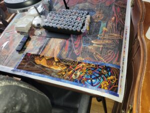 I’m getting close to the more detailed parts the telescope, the night sky, the little magical stars that make this artwork so special. I can’t wait to see how they come to life in diamonds.